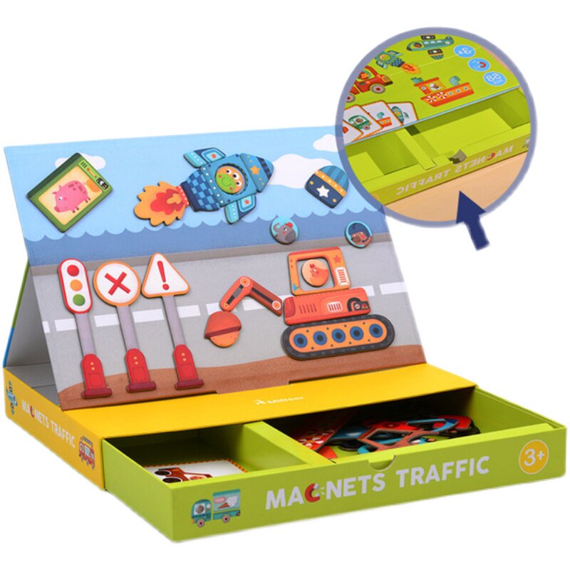 mideer miraffe child magnetic puzzle traffic geometric change face figure changing costume puzzle magnetic parquet set-Taobao