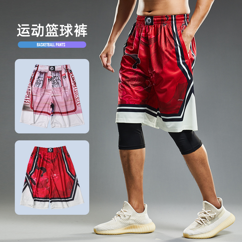 Summer basketball pants men's shorts sports training American five-point over-the-knee loose quick-drying student youth trend pants