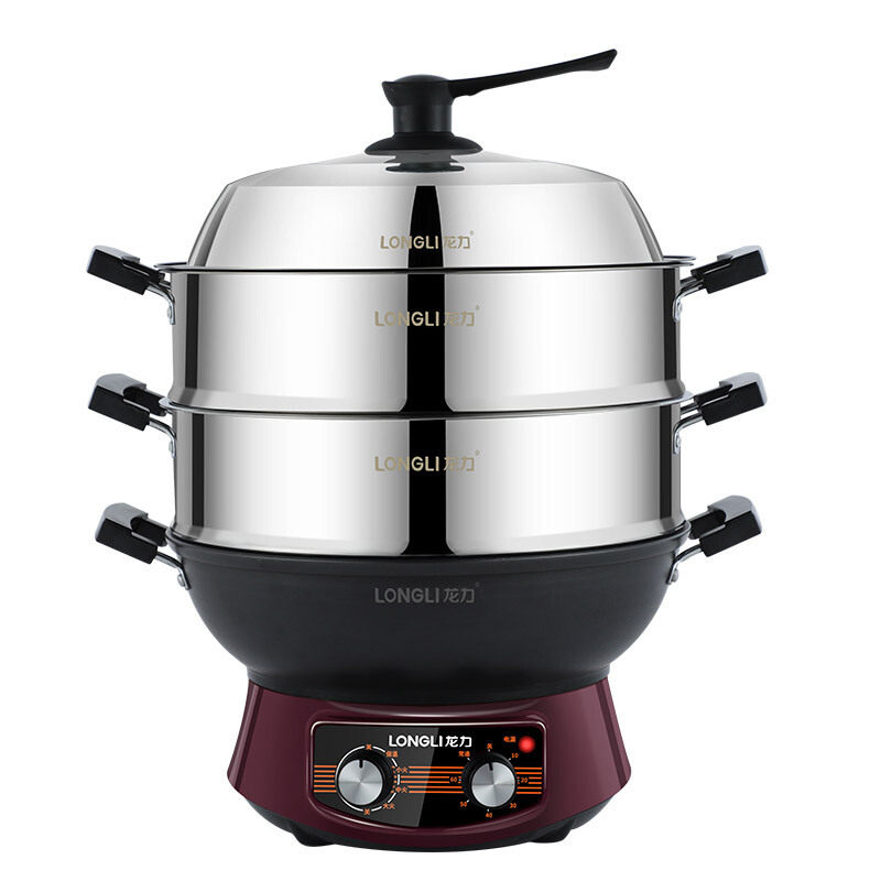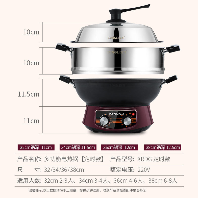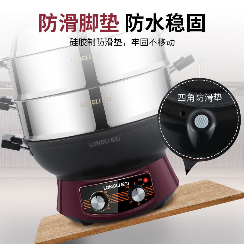 Longli electric frying pan multi-function electric hot pot electric cooking pot cast iron large-capacity household timing one-piece with steamer