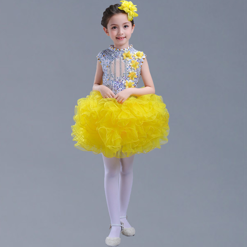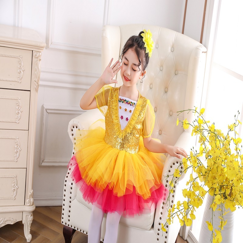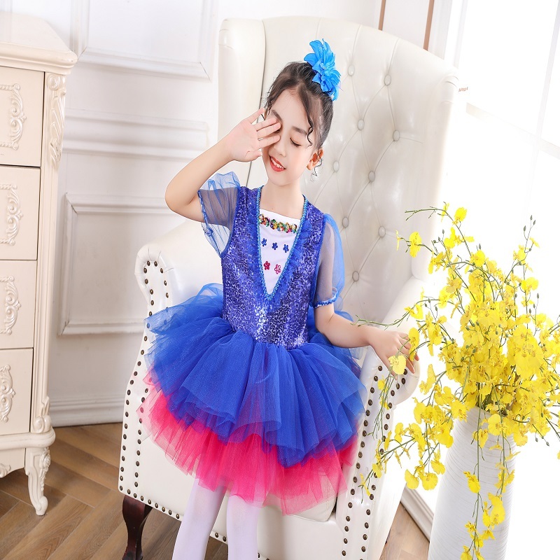 61 Girls Dance Dress Fluffy Dress Program Children's Costumes Act Out Girl Princess Kindergarten Dance Suit