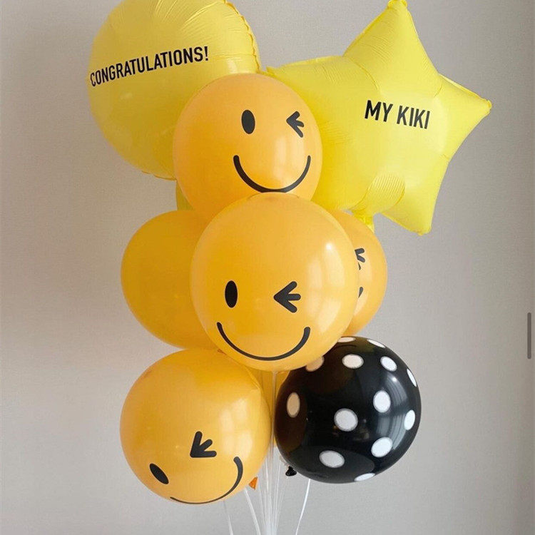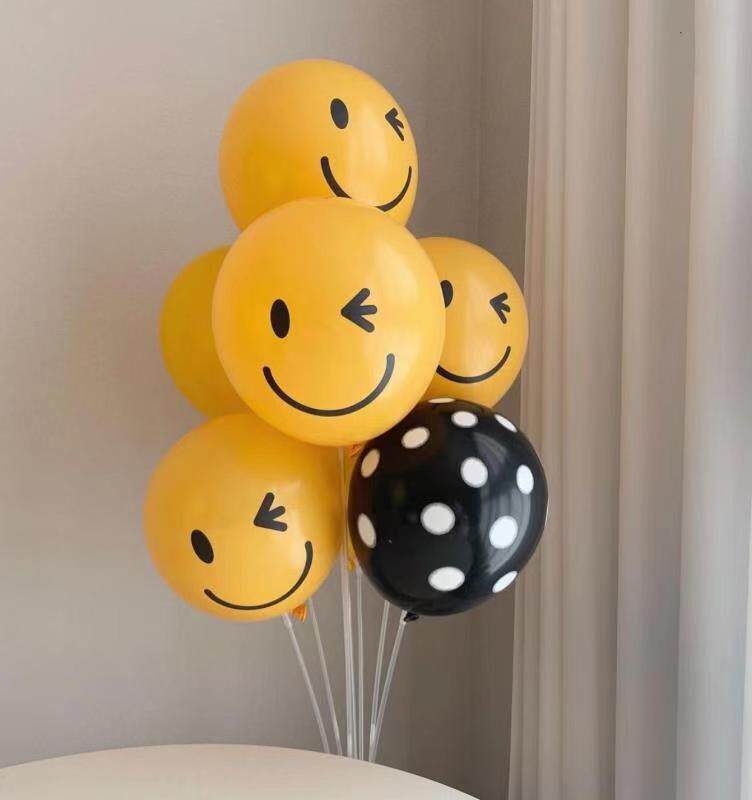 Birthday Decoration Net Red yellow smiley face Balloon Column Bracket Ground Table Flopping Party Children's Set Decoration Cartoon Arrangement