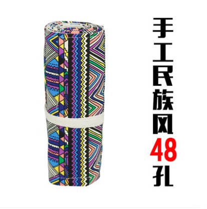 National wind canvas roller pen curtain 36 48 72-hole sketch color pencil curtain students with storage cotton pen roller bag