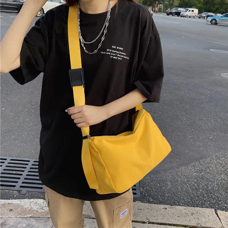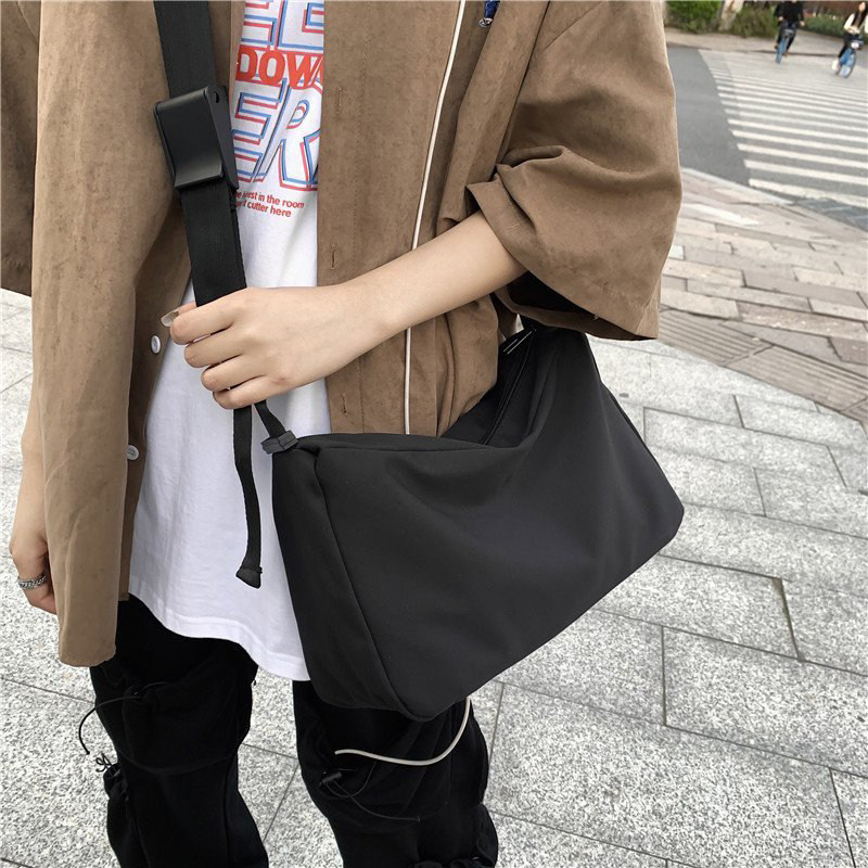 Simple canvas bag female crossbody 2021 new trendy sports shoulder bag college students light small bag casual all-match black