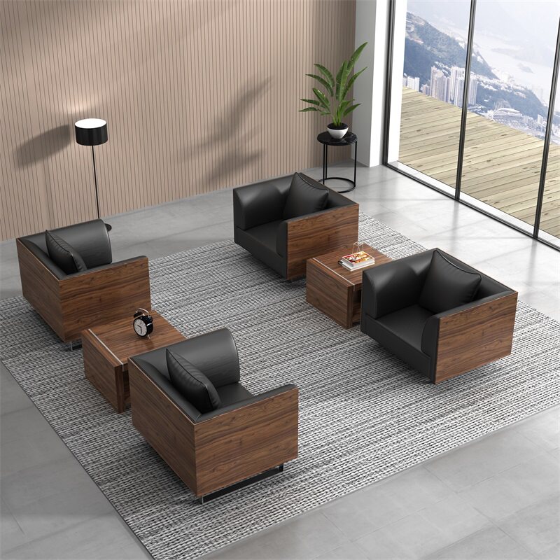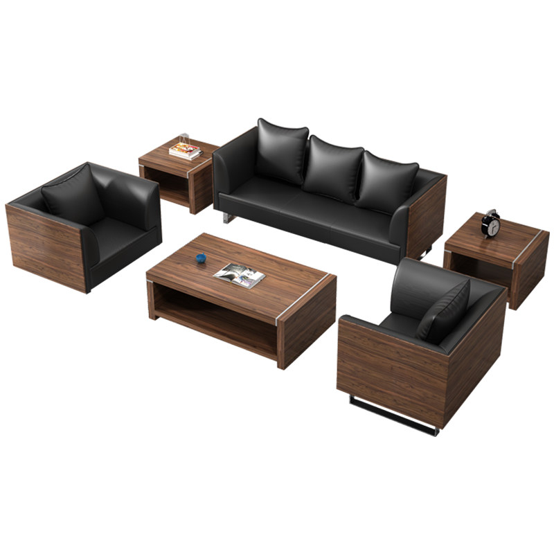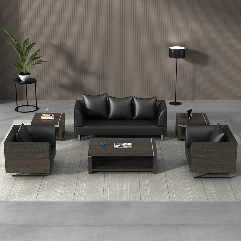 Real Leather Office Sofa Business Hospitality guests in talks Bull Leather Brief Modern Casual Office Sofa Tea Table Combinations