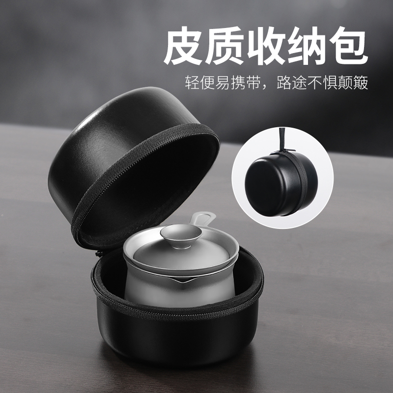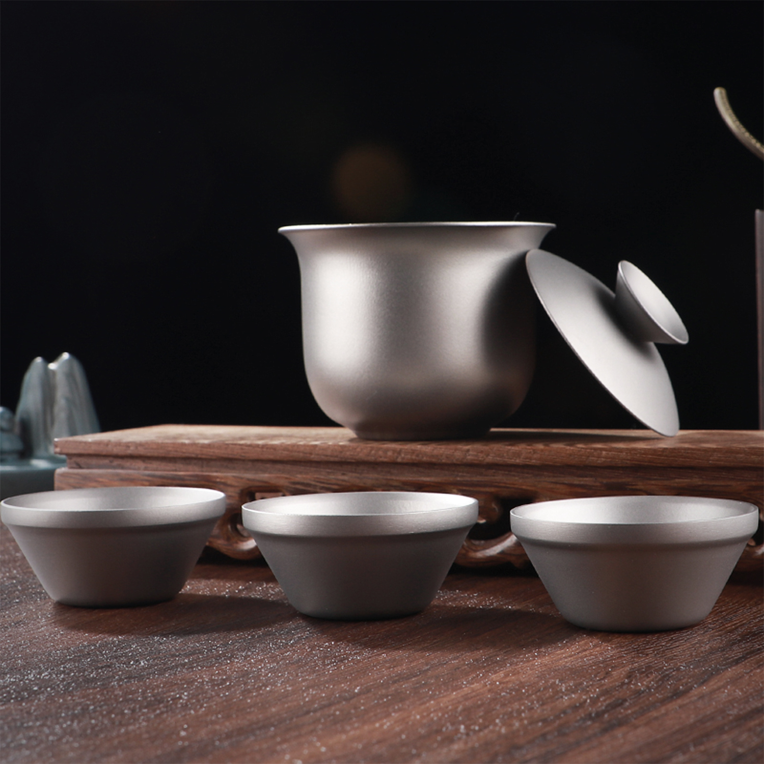 Pure Titanium Double Layer Cover Bowl Tea Bowl Home Portable Travel Set Group Outdoor Tea Cup Titanium Alloy Triple Kung Fu Tea Set