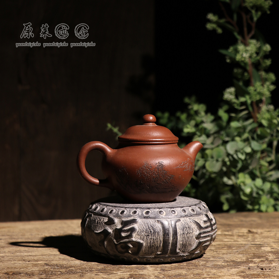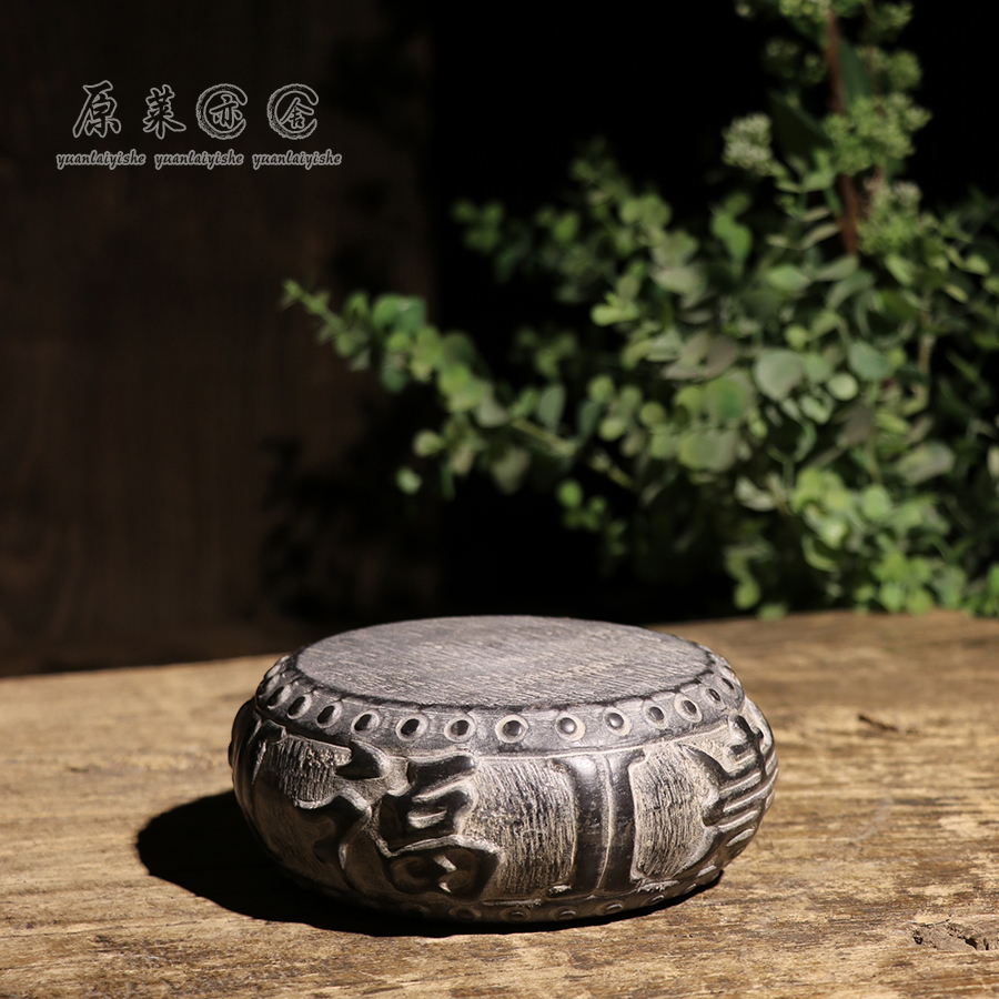 Original Lai bluestone carving Fushou stone drum base pot bearing tea table ornaments traditional craft stoneware Chinese ancient tea set