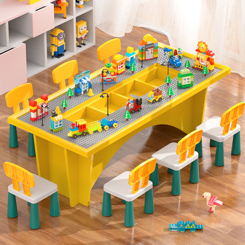 Children Toy Building Blocks Table Boys Girls Big Size Kindergarten Solid Wood Table Puzzle Games Table Multifunction
