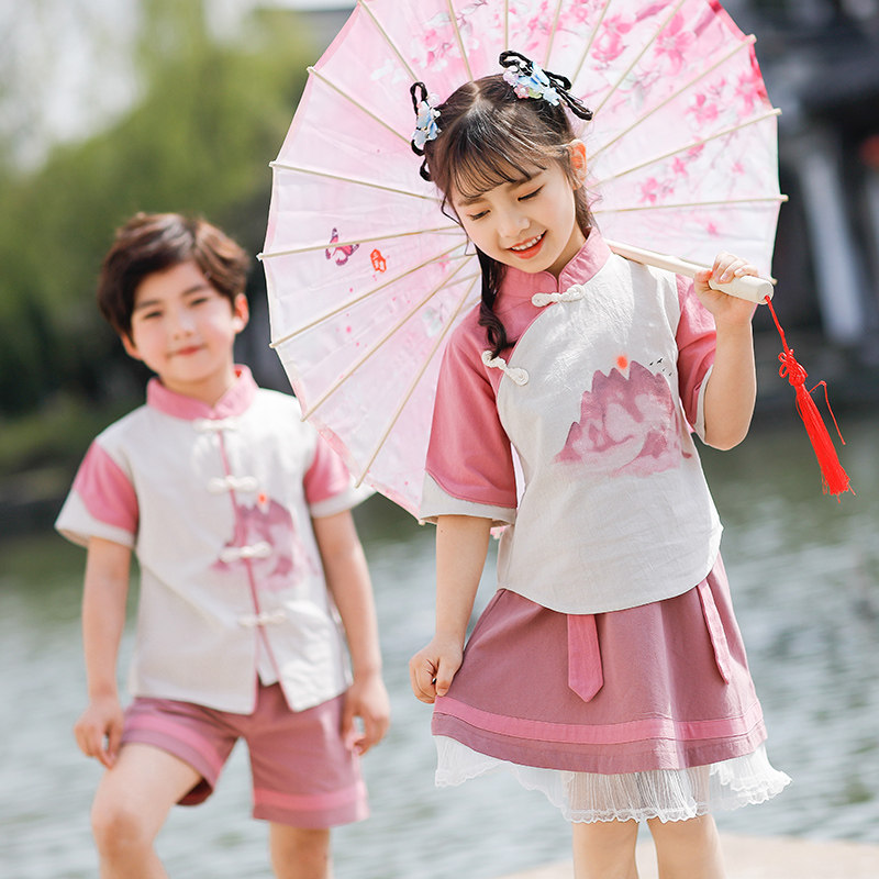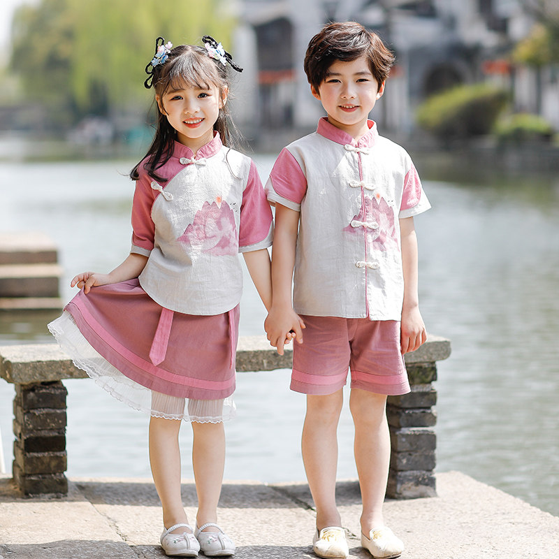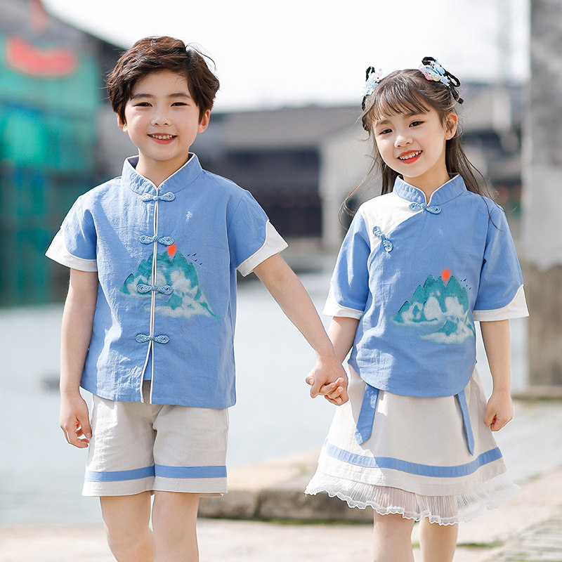 Children acting out of Chinese style Chinese school Han clothes ancient dress choral performance clothes Primary kindergarten graduation photos of the costumes Xia