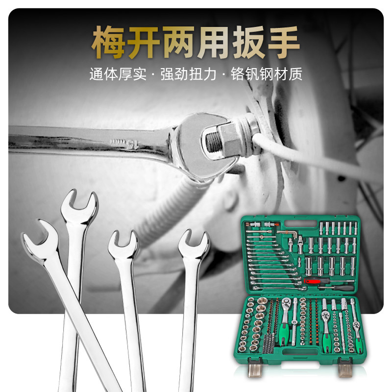 Automotive toolkit for multi-function automobile special maintenance toolbox sleeve roller wheel wrench combination tool large