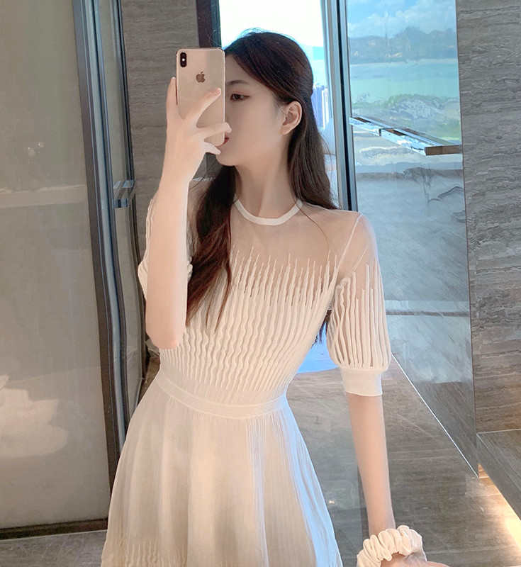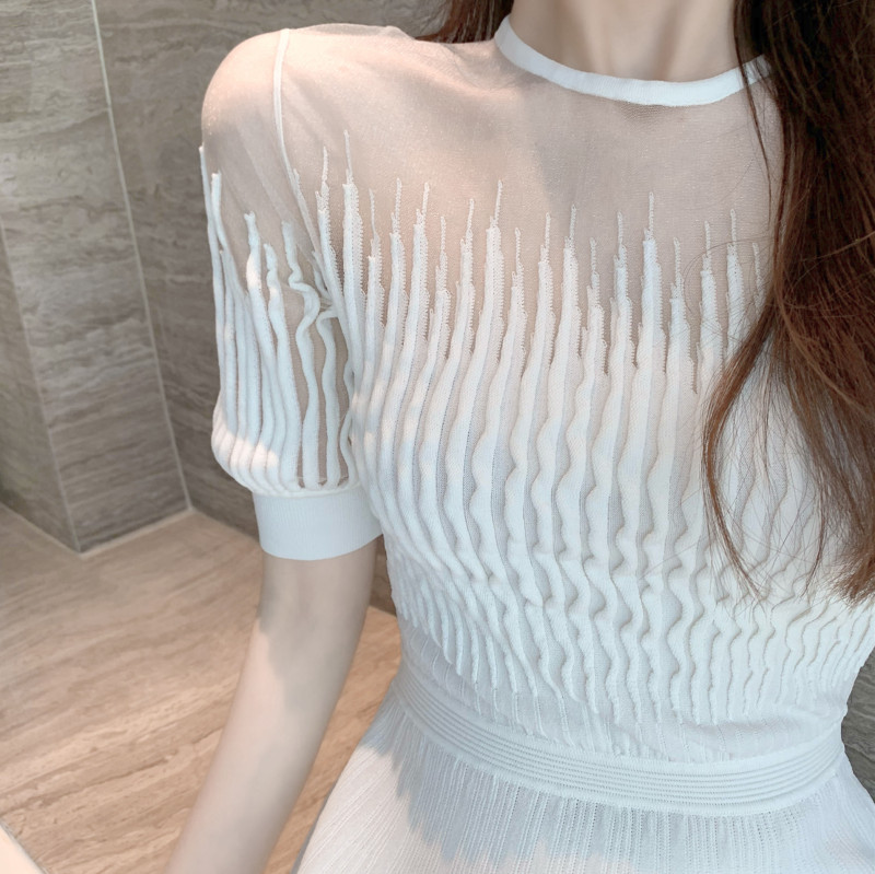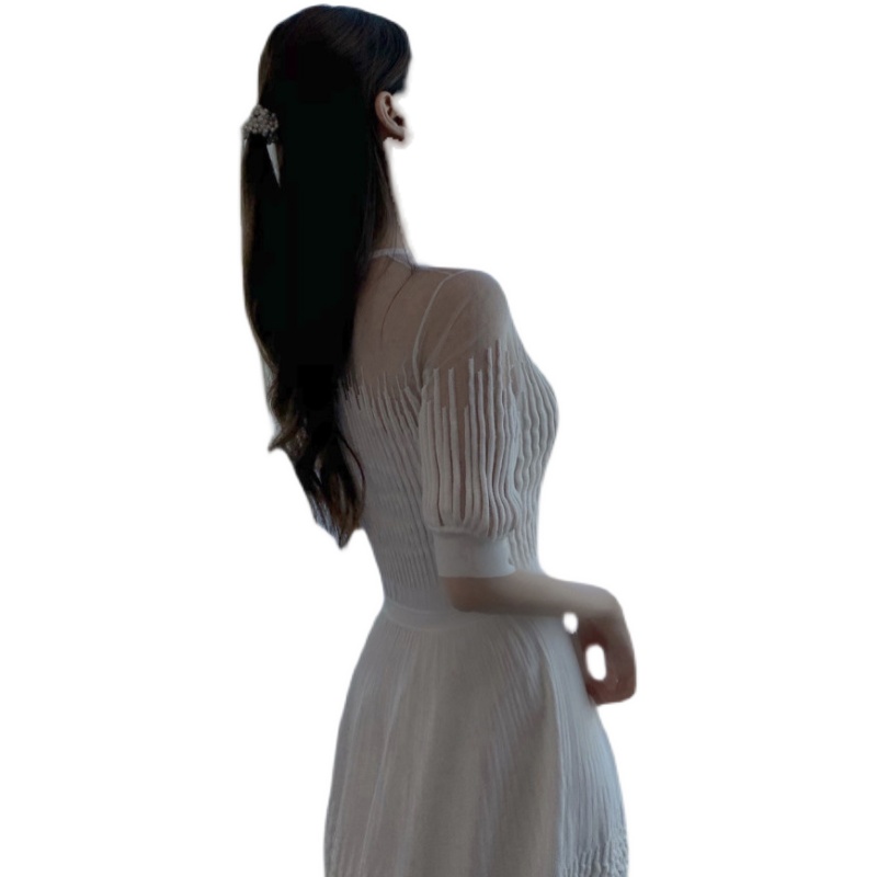 Gu Qiqi GUQIQI French light cooked lace skirt 2021 summer new super fairy goddess Fan light luxury dress