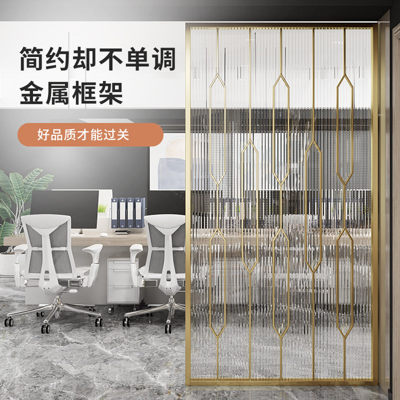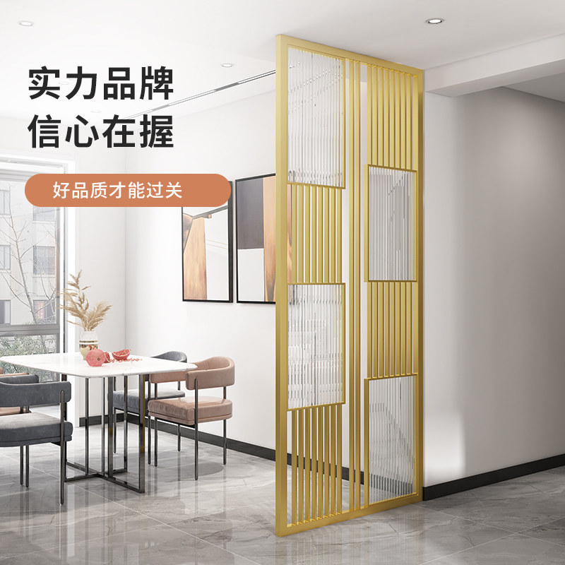 Modern simple living room screen partition entrance decoration stainless steel household dining room metal light luxury glass screen wall