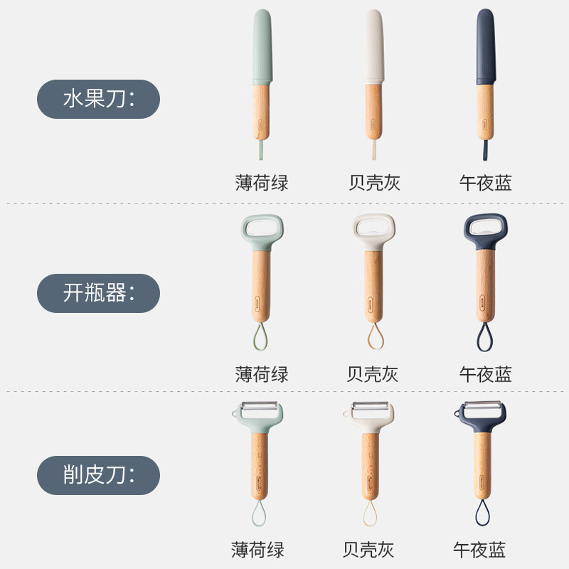 Fruit Knife Shell Grey Fruit Knife Midnight Blue Fruit Knife Mint Green Paring Knife Shell Grey Paring Knife Midnight Blue Paring Knife Mint Green Bottle Opener Shell Grey Bottle Opener Midnight Blue Bottle Opener Thin