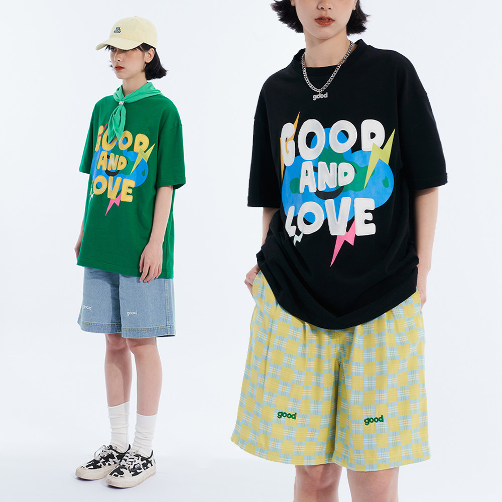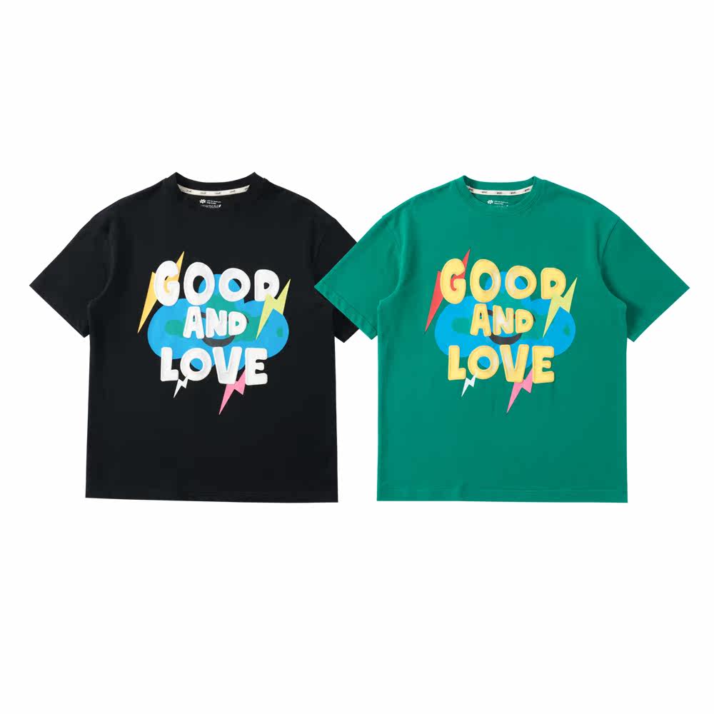 Nice store MeihaoStore Lightning Cloud Alphabet Cartoon Sparkling Printed Pure Cotton Short Sleeve Lovers