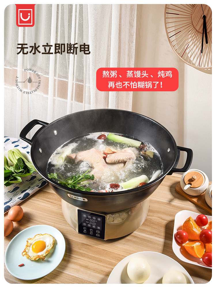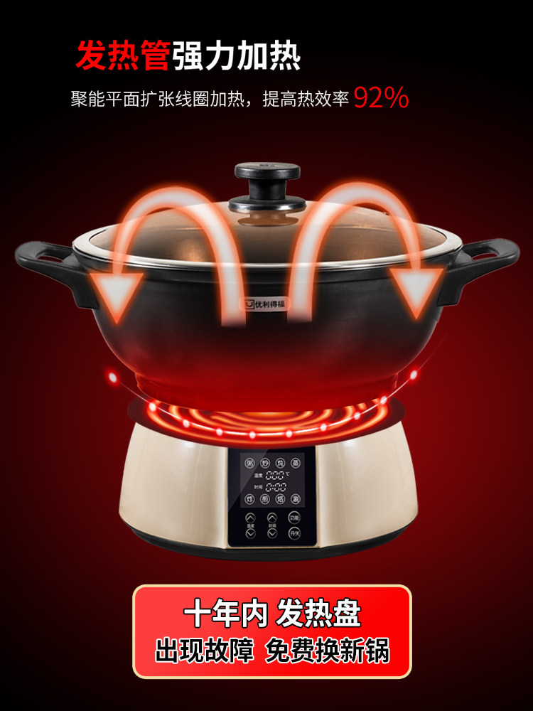 Smart cast iron electric frying pan household multi-function electric heating pot cast iron pot cooking rice steaming and stewing integrated plug-in frying pan