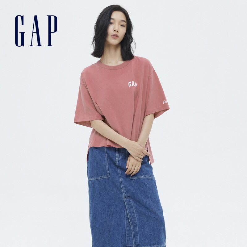 (pro-skin) Gap women's clothing pure cotton LOGO loose short sleeves T-shirt 698851 Summer new sports blouses