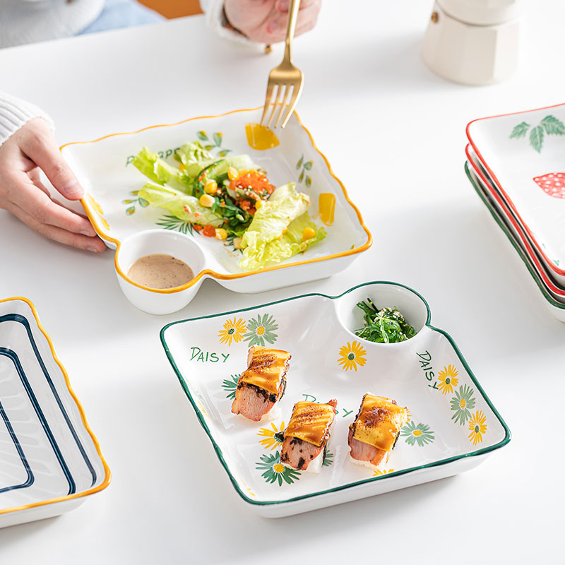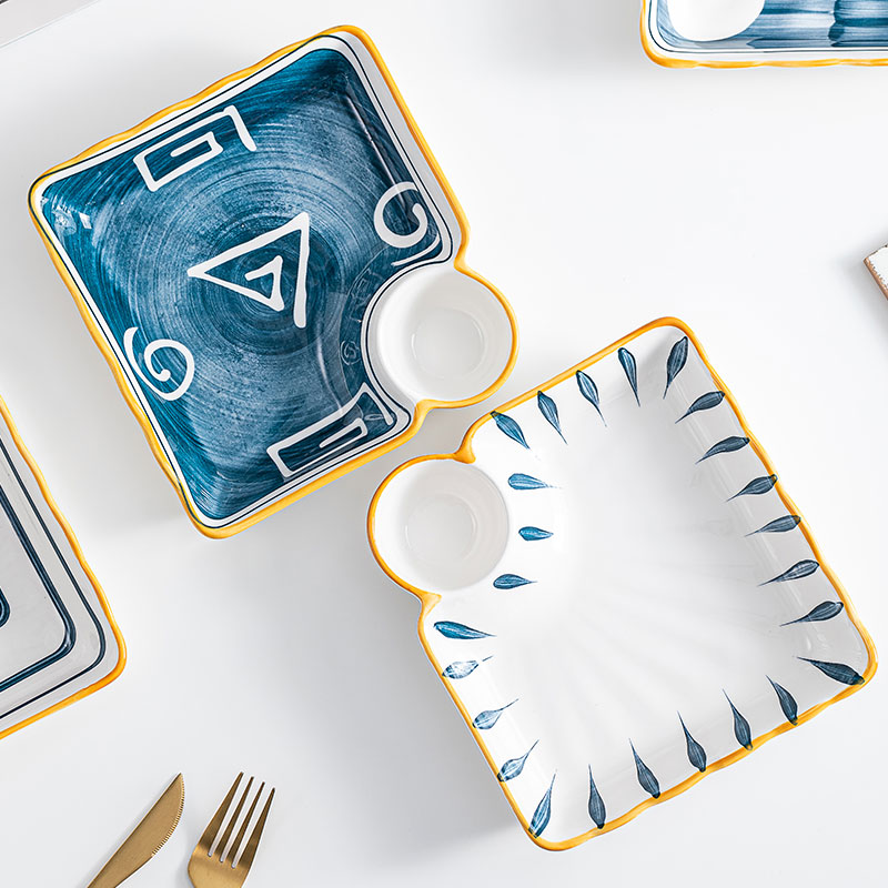 Japanese-style creative dumpling plate with vinegar plate square glaze under small fresh ceramic household tableware French fries snack plate