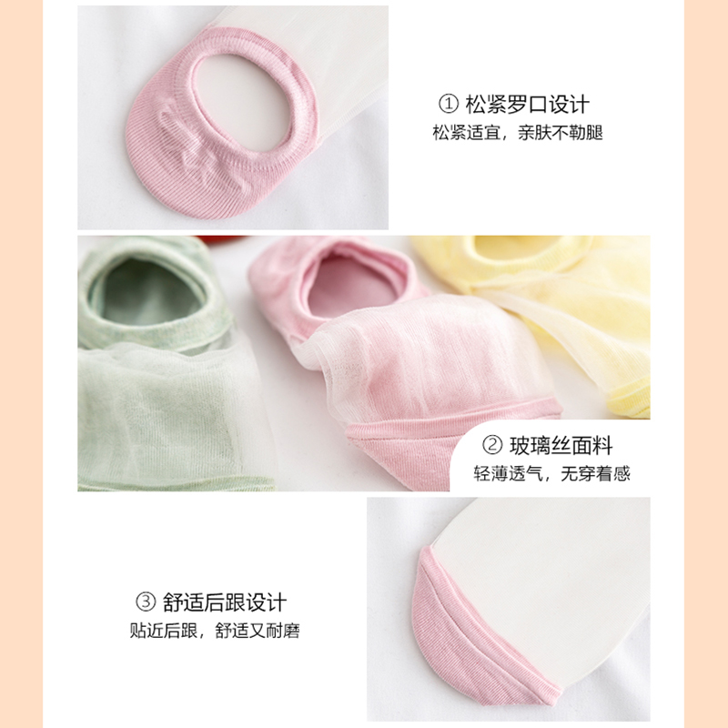 Invisible Socks Invisible Summer Pure Bottom Silk Socks Spring Autumn Season Slim ins Tide Crystal Glass Silk Stockings Children Short Socks Shallow