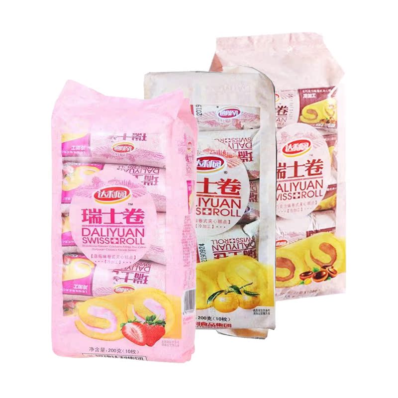 4 Bagged Dali Garden Swiss Rolls Strawberry Orange Juice Chocolate 200 gr 10 Breakfast bread cake spots