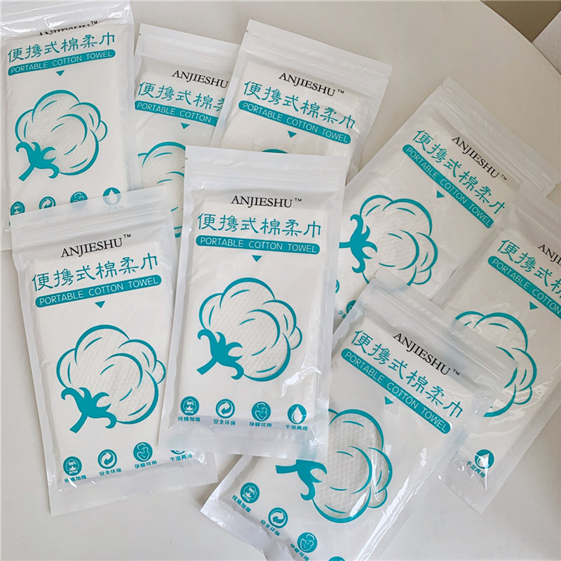 Self - sealed bag Clean sanitary portable 10 pumped cotton soft towel cleaning face towel wiped face towel