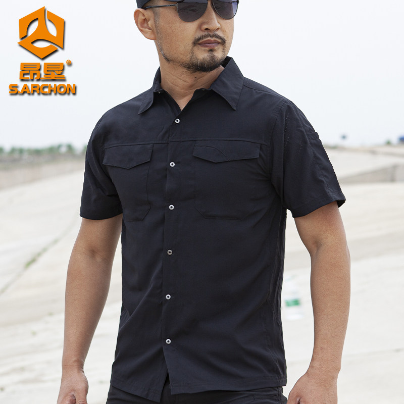 Summer outdoor short sleeve shirt male ultra-thin breathable military fan Tactical Speed Dry Shirt Flip collar overalls for casual male blouse