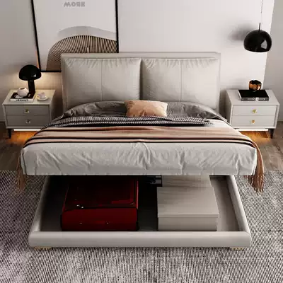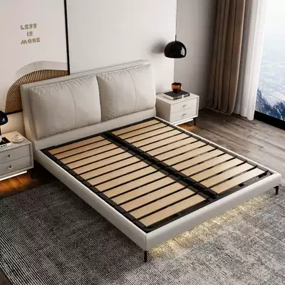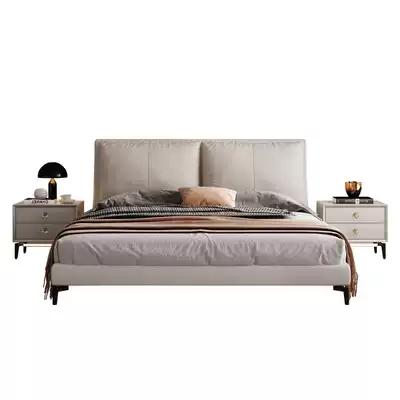 Italian leather bed modern minimalist Nordic solid wood Master Bedroom 1 8 m double bed 1 5 m bedroom soft bag bed wedding bed