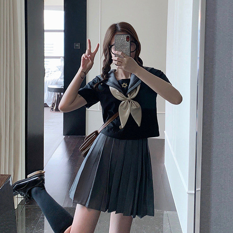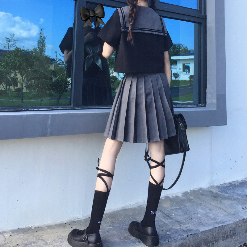 JK uniform dress genuine girl Japanese sailor dress college wind student gray fold dress suit female summer