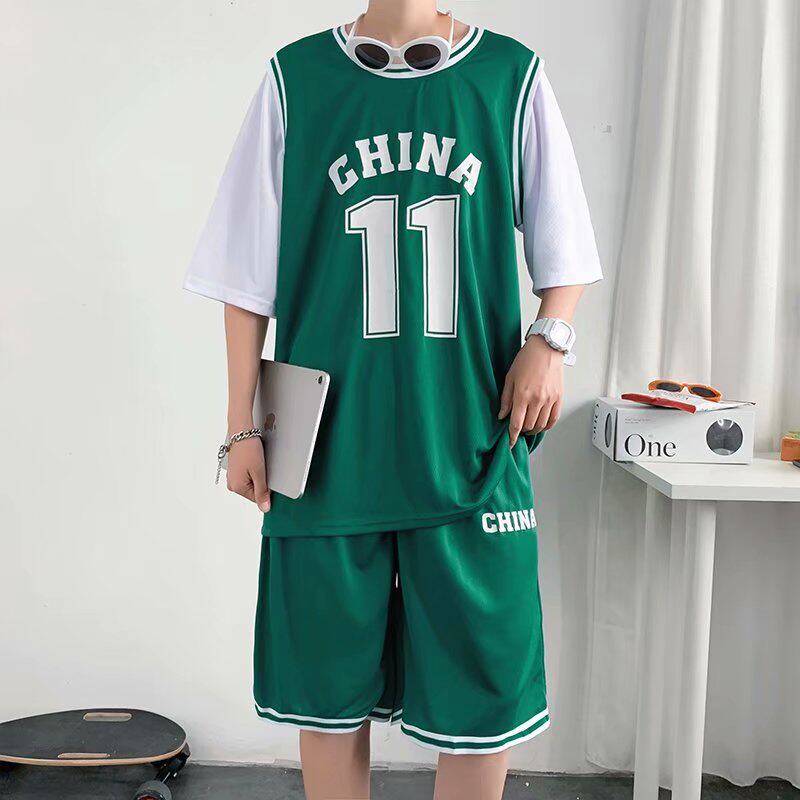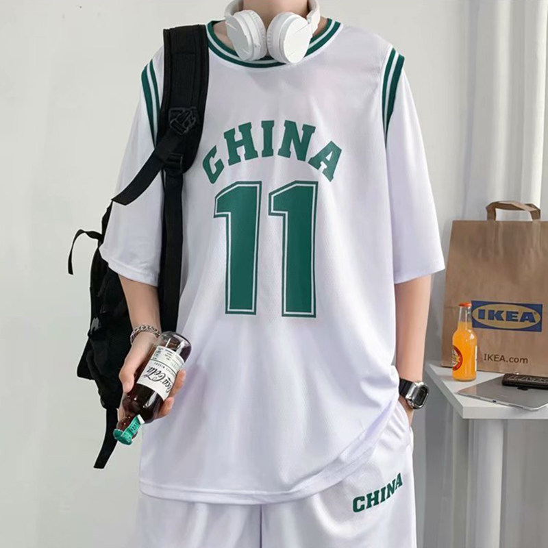 Sportswear suit female summer 2022 new loose fake two-piece basketball short-sleeved t-shirt thin section five-point shorts