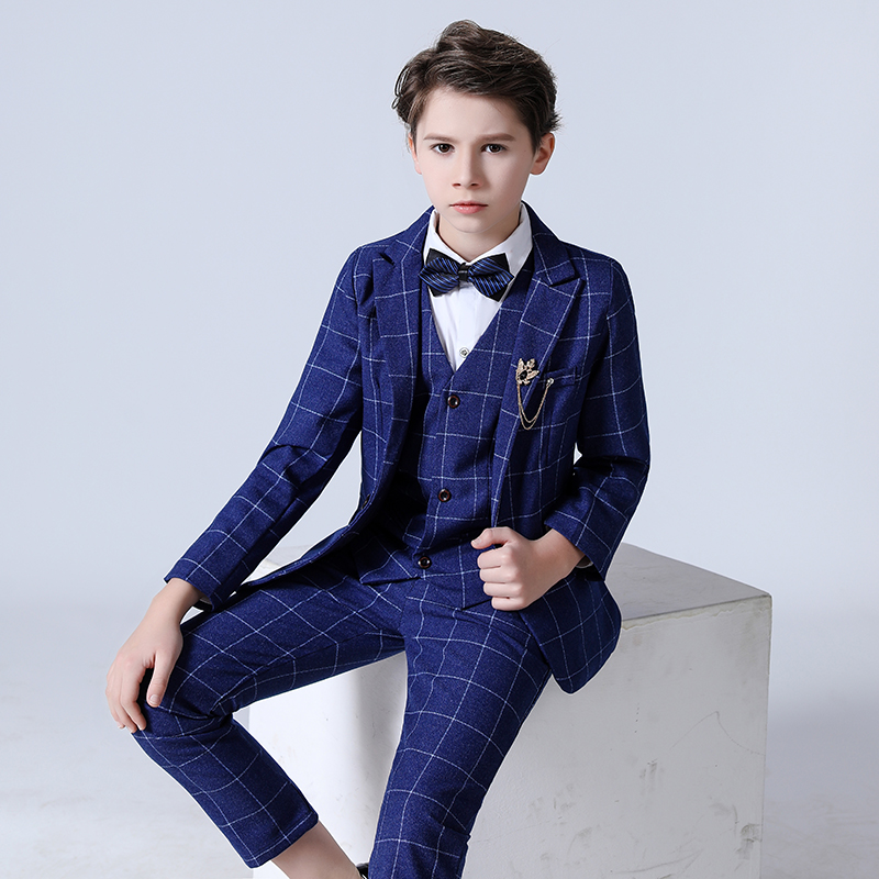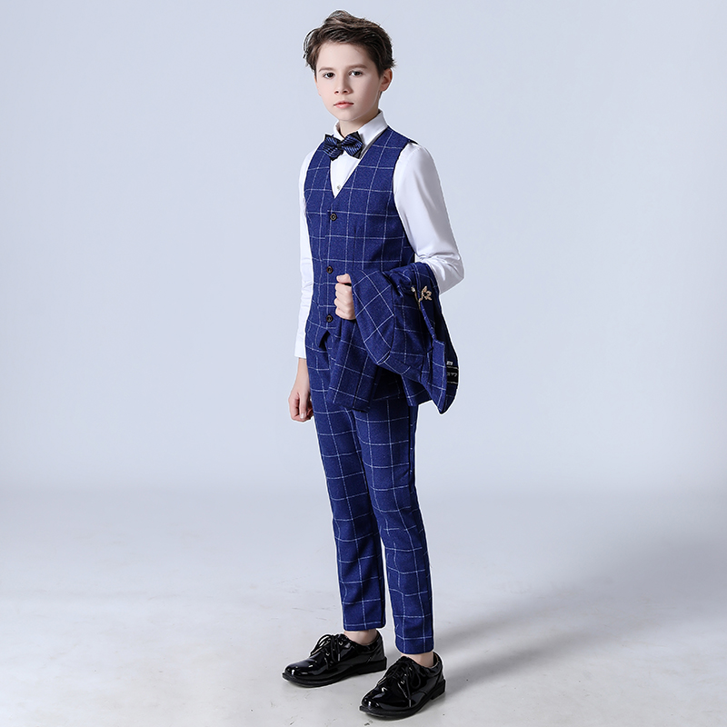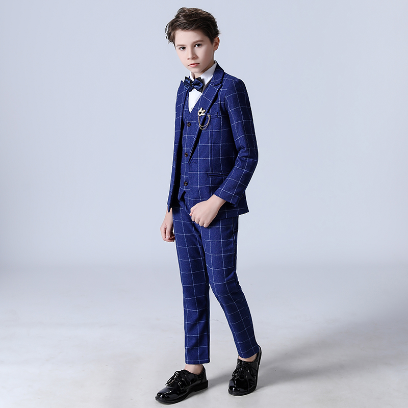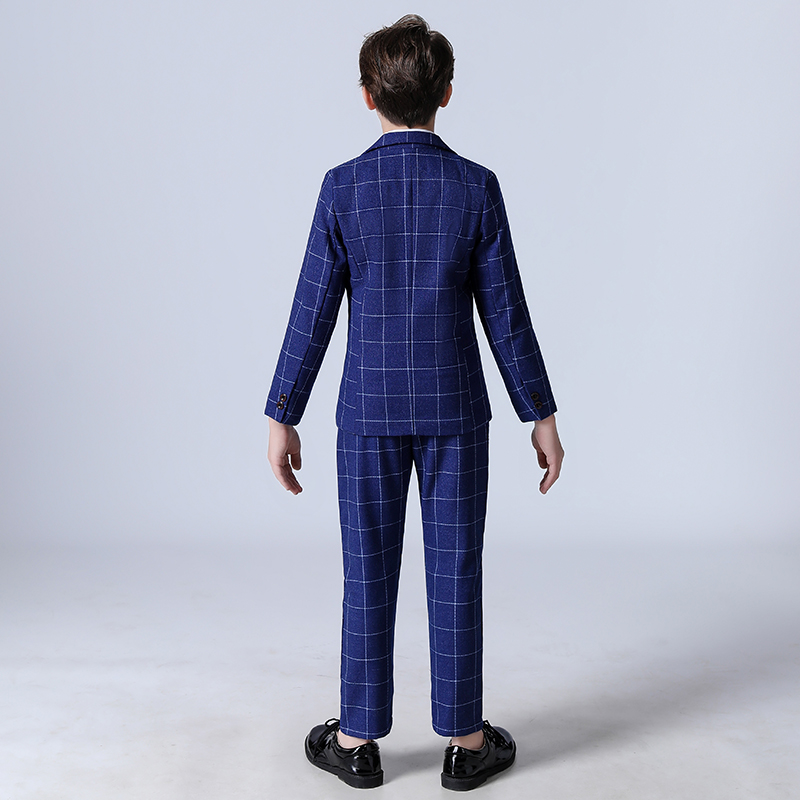 Six-one children's suit suit British boy flower girl dress little boy piano performance suit blue plaid