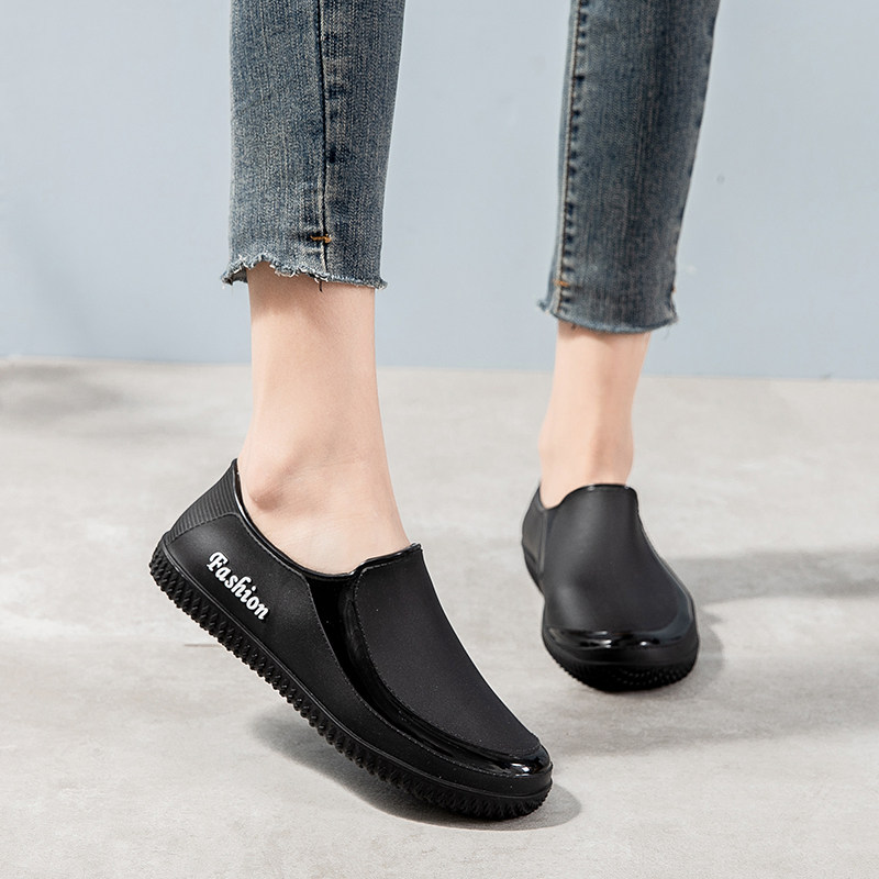 Fashion Light Mouth Flat-bottomed Rain Shoes Women Waterproof Non-slip Short Drum Rain Boots Women All Season Wear Carwash Kitchen Working Rubber Shoes