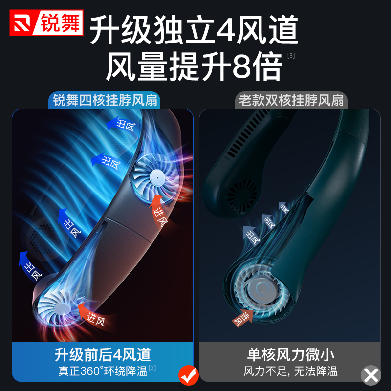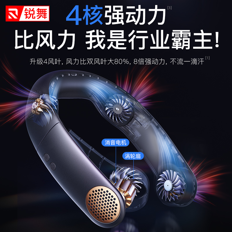 Rave halter neck fan usb portable portable small charging mini lazy hanging neck hanging neck Leafless refrigeration air conditioning outdoor kitchen student big wind electric fan Silent wind ring folding
