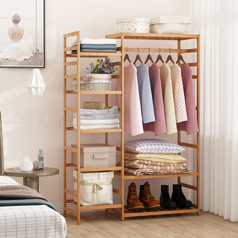 Simple bamboo cabinet coat rack floor home bedroom hanger wardrobe living room clothes bag storage rack