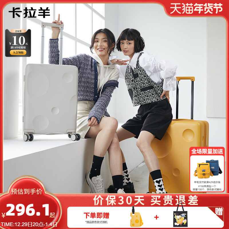 Kara sheep cheese suitcase female 20 inch boarding case anti-scratch trolley suitcase light suitcase male universal wheel 24 inch