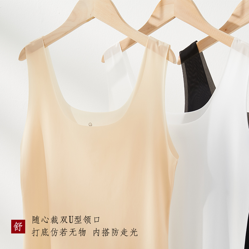 2 pieces Ice Scarless Vest Woman Summer Ultrathin large U collar Nets Bottom Flesh color harness Vest Closets