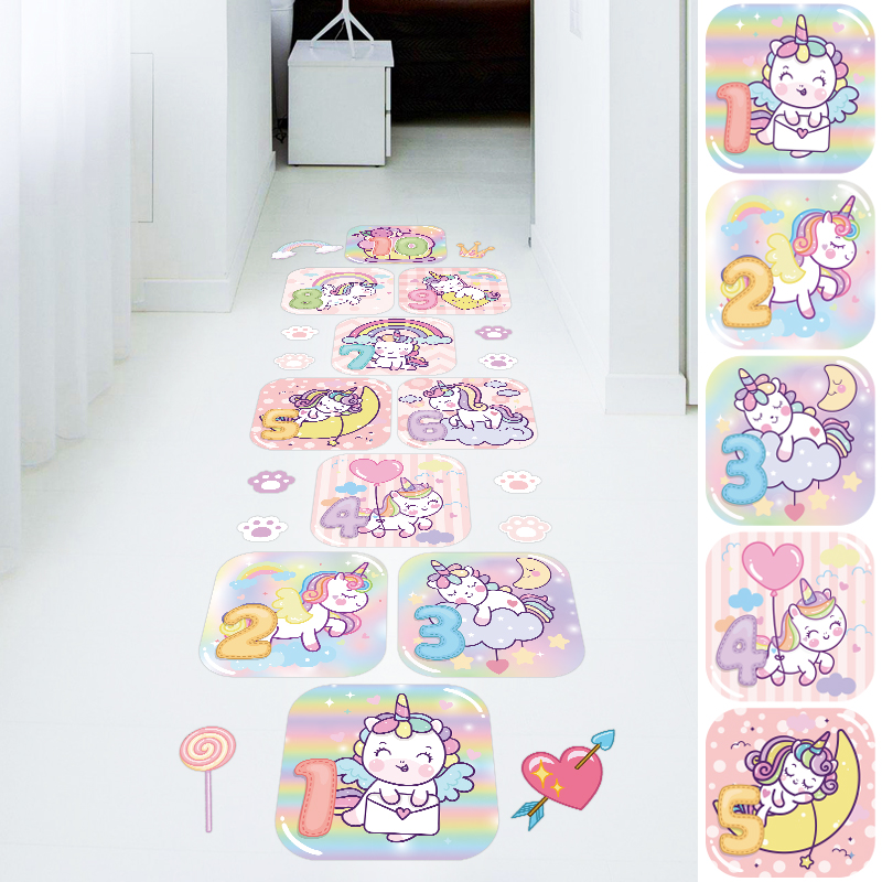 Baby task wall stickers hopscotch digital jump grid stickers kindergarten decorative floor stickers children's game stickers