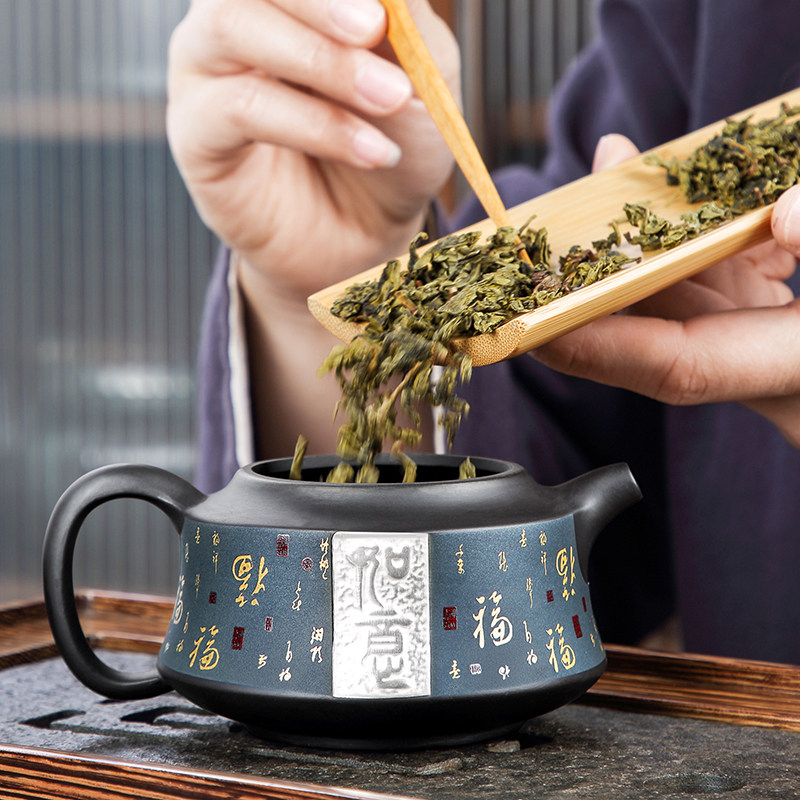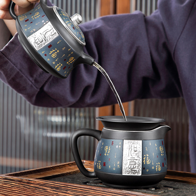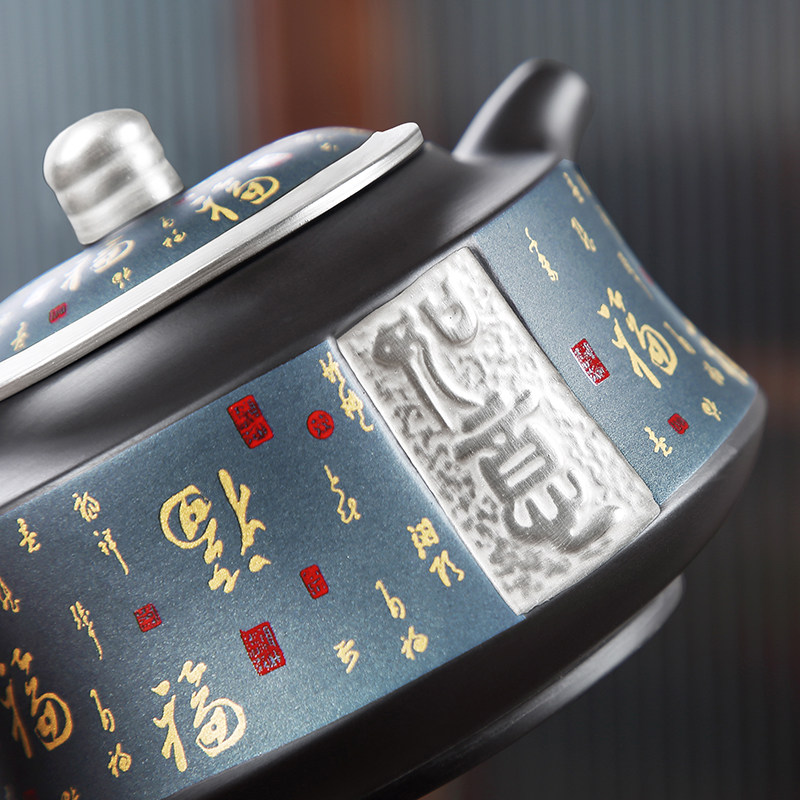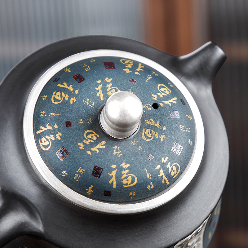 Tang Xian purple sand pot home living room teapot large capacity single kung fu tea set gilt silver large single pot pour teapot