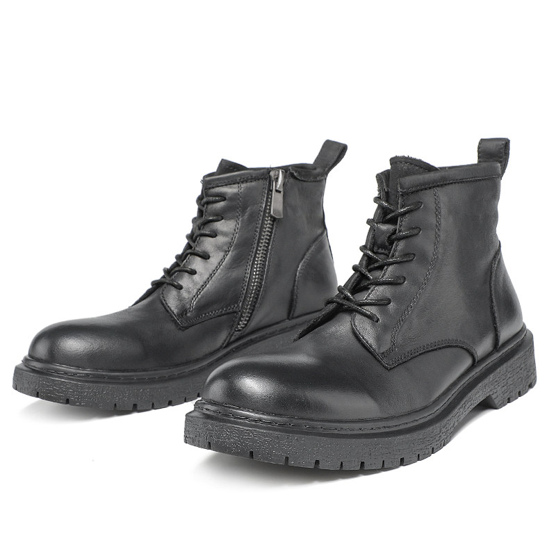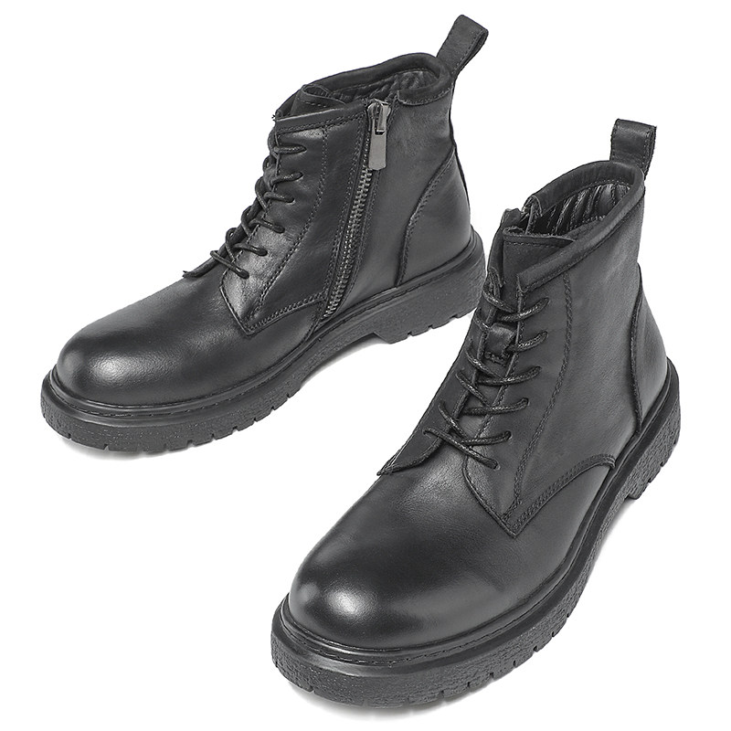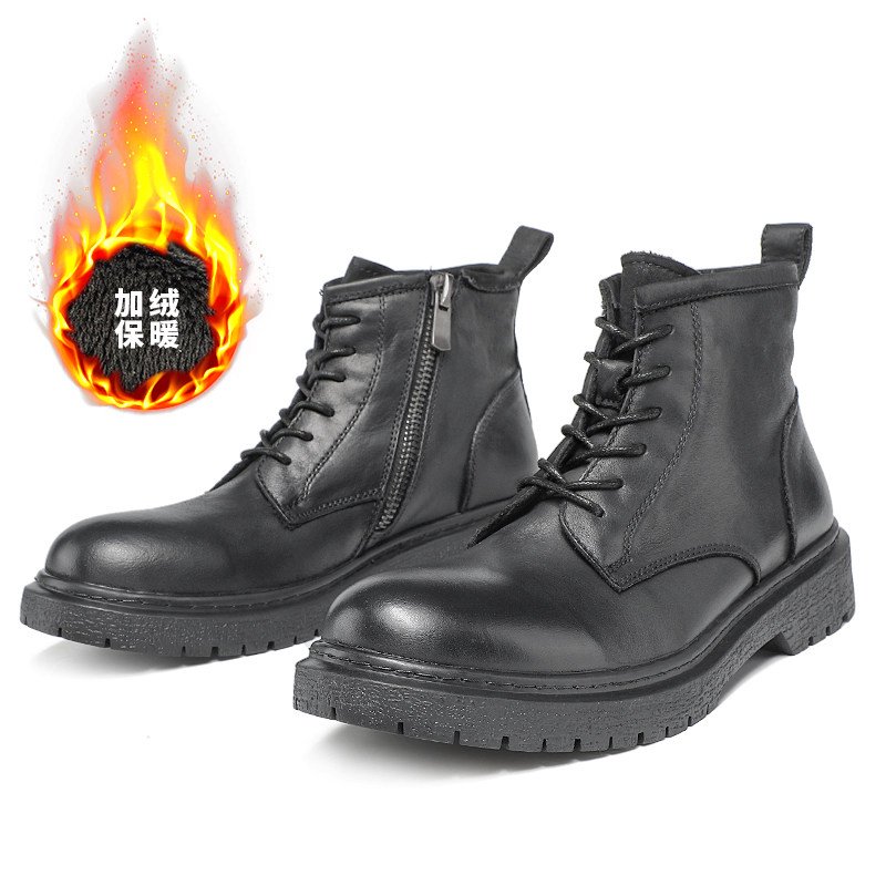 Martin boots men's British mid-tube cowhide boots tooling boots autumn and winter cotton shoes men's warm leather all-match short boots