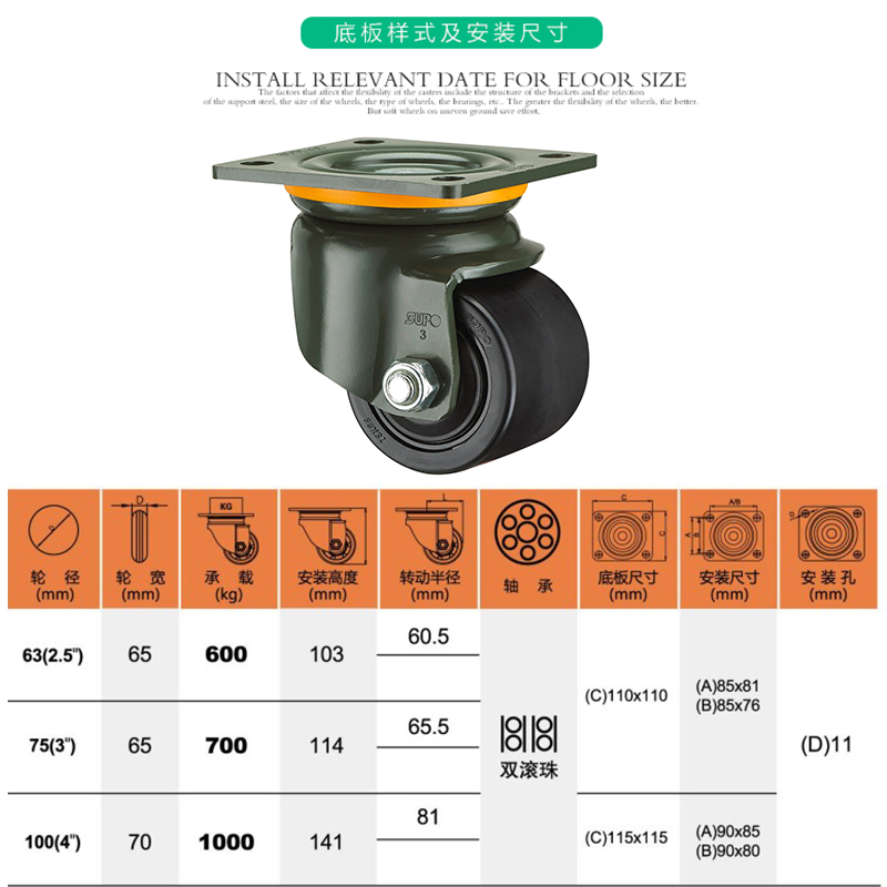 SUPO Thriving Castors J30 Models Super Heavy Universal 3 Inch 4 Inch Low Center Of Gravity Nylon Wheels Load 1 ton Equipment Wheels