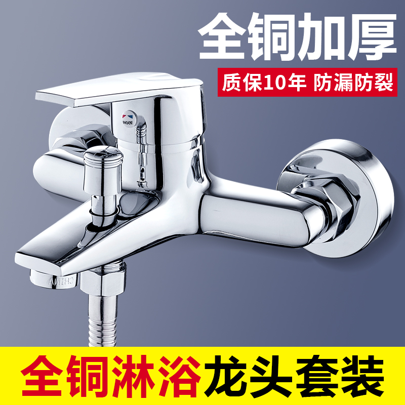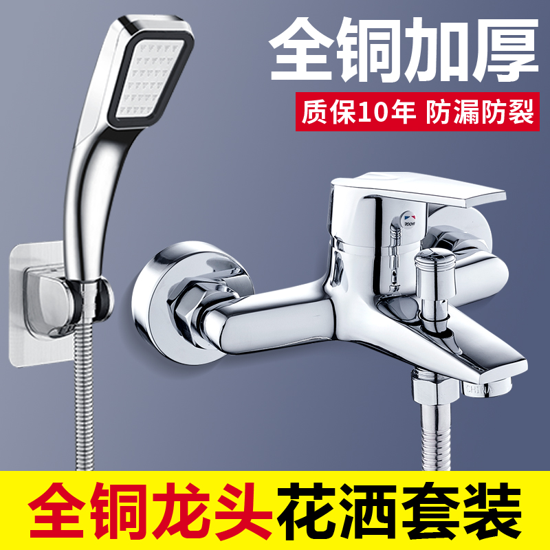 Shower set Household all copper bath Concealed simple surface mounted hot and cold faucet Pressurized rain shower head shower