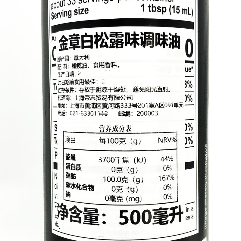 Italian Import Gold Seal White Truffle Seasoned Oil 500ml Bottled Western Meal Seasoned White Truffle Taste Olive Oil