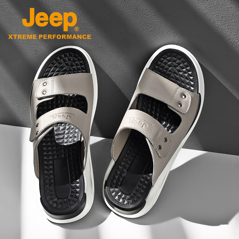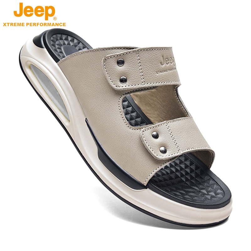 jeep slippers men's summer breathable outside wearing beach shoes men's outdoor non-slip genuine leather air cushion casual cool slippers