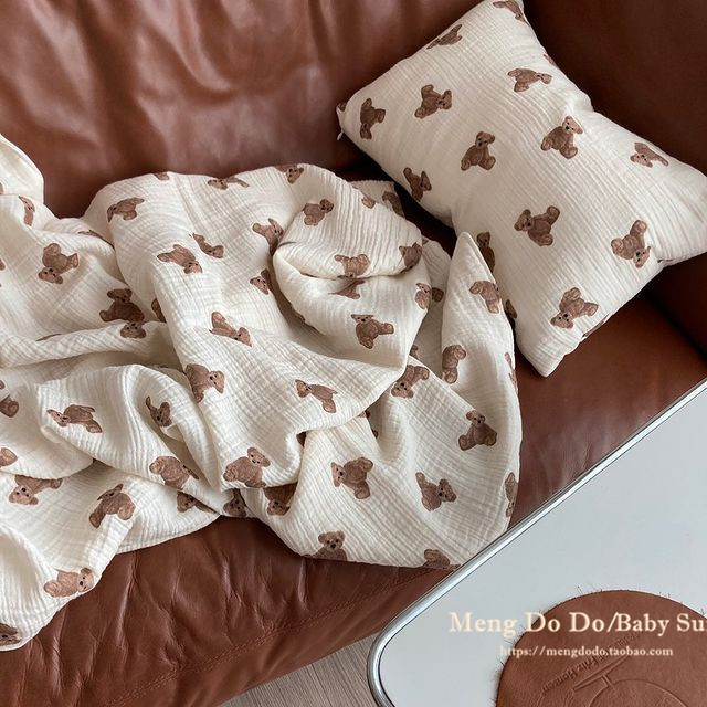 mengdodo Korean style cute bear blanket baby gauze towel towel blanket children's empty strip blanket nap blanket