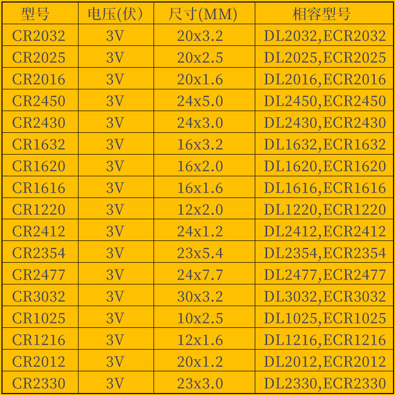 CR2032 (1 grain) CR2032 (2 grain) CR2032 (5 1 grain) CR2025 (1 grain) CR2025 (2 grain) CR2025 (5 grain)