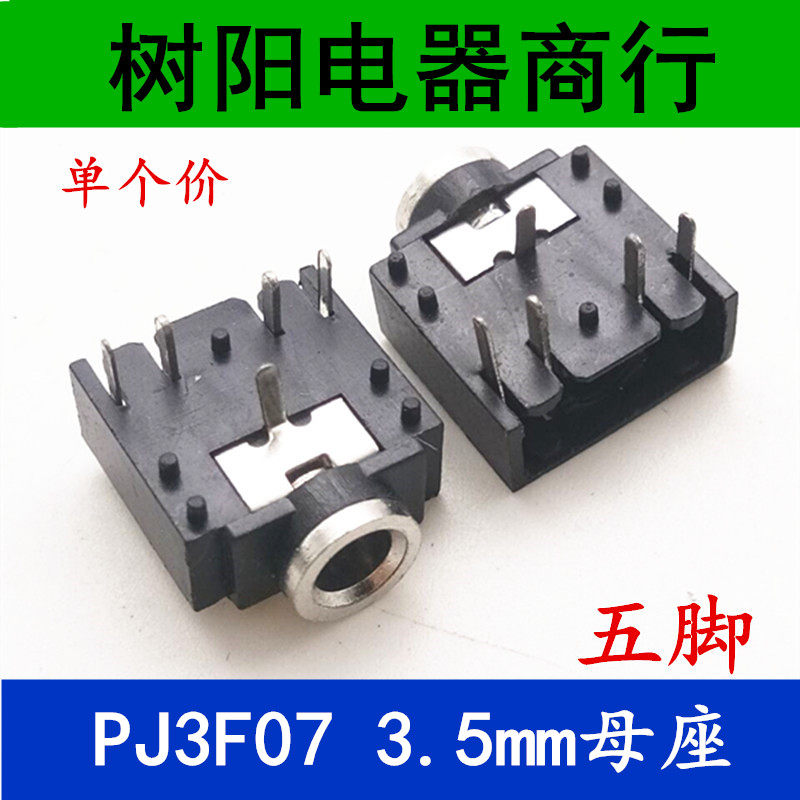 PJ3F07 metal head earphone holder 3 5MM earphone socket dual channel 3 5mm female seat five-pin audio five-pin