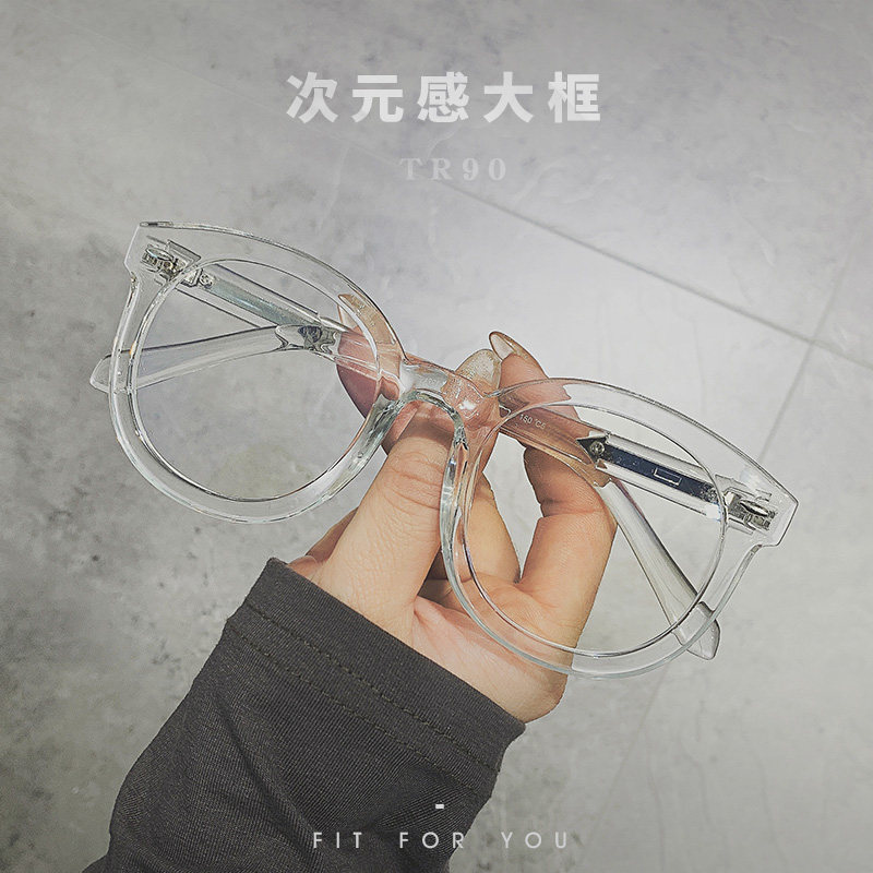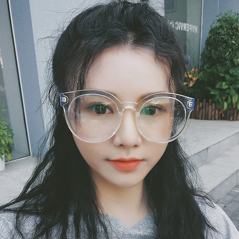 Han edition transparent large round frame myophorescent glasses faces with thin face can be equipped with degree digital red frame