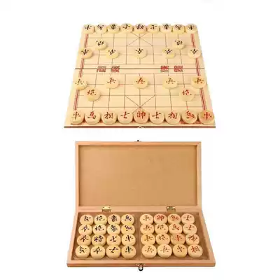 Chinese chess solid wood large chess piece adult wooden box foldable board set primary school children portable chess