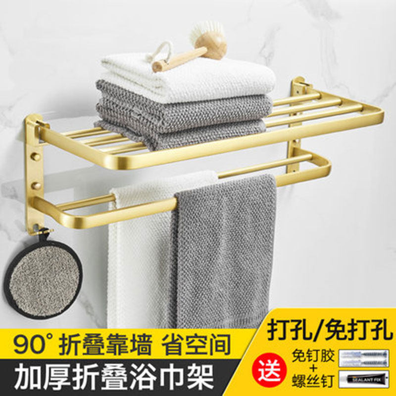 Nordic Bathroom Hair Towel Rack Wire Drawing Golden Makeup Room Bath Towels Shelf-Free Wall-mounted Creative Light Luxury