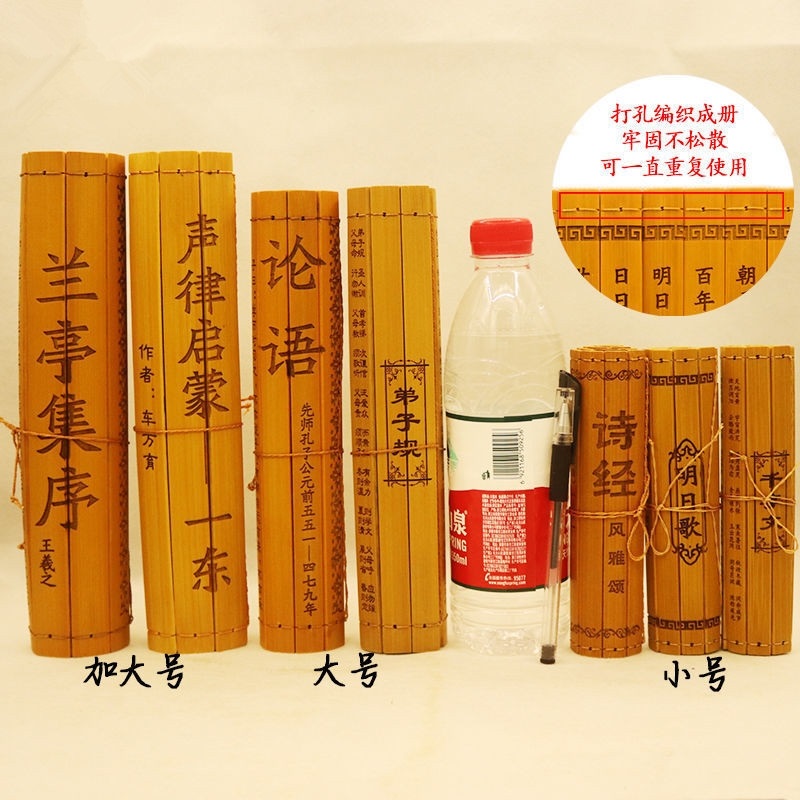 Blank brocade bag (without bamboo slips) Analects (excercises) Three words of (full text) disciples (full text) Lanting chronicles (full text) Poetry (excercises) Heart scripture (full text) Rhythmic Enlightenment of One Dongming