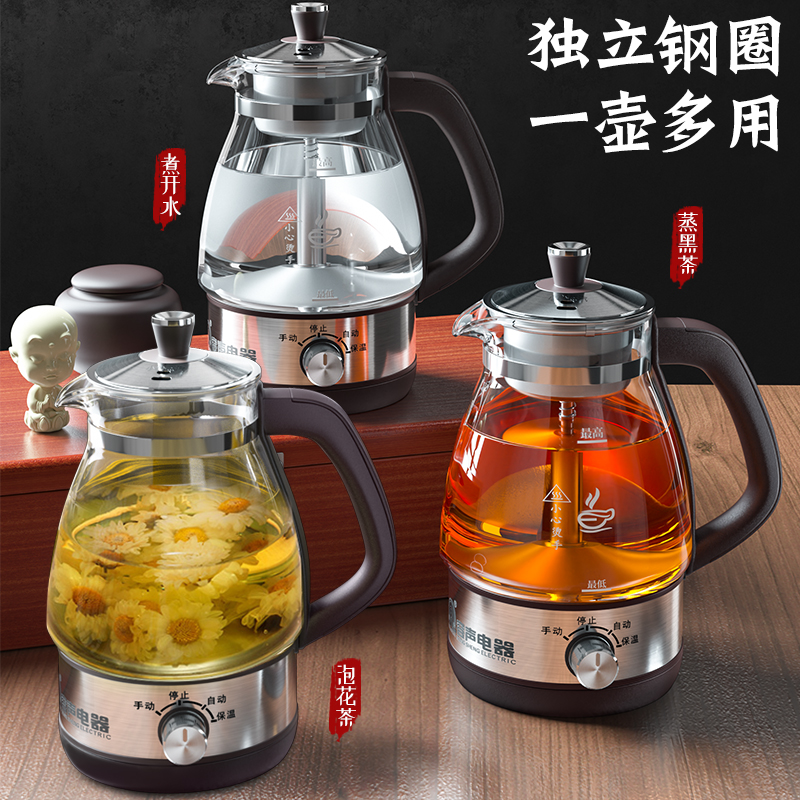 Accommodating and boiling teapot health preserving pot Full automatic steam cooking tea instrumental office Small quick cooking pot glass black teapot