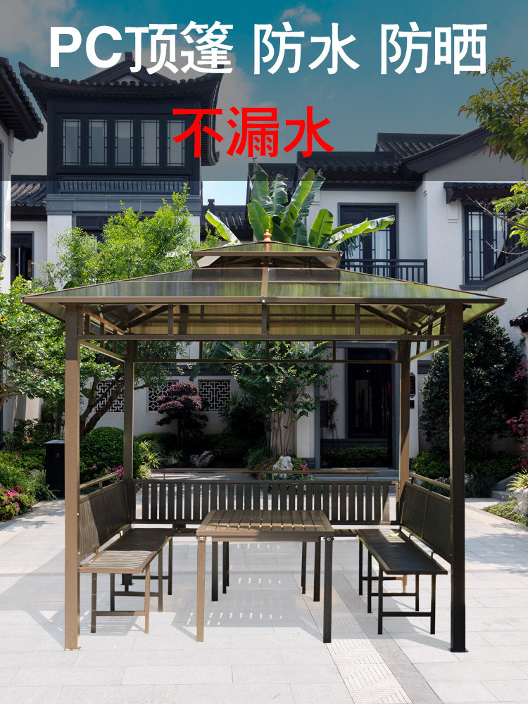 Outdoor tea gazebo construction site courtyard villa terrace wrought iron four-column pavilion PC roof four-corner pavilion modern wooden house