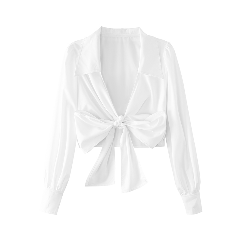 Fa-style vintage shirt female capes cross design sensation small crowdsourced butterfly knot long sleeve temperament close-up blouses woman